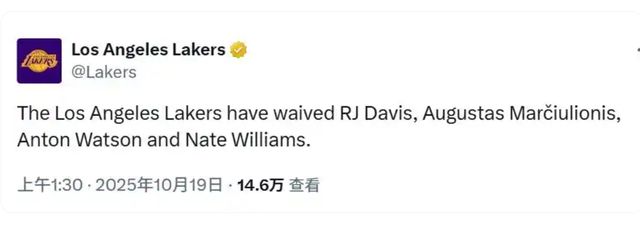 常规赛倒计时最后一天,湖人再度官宣消息: